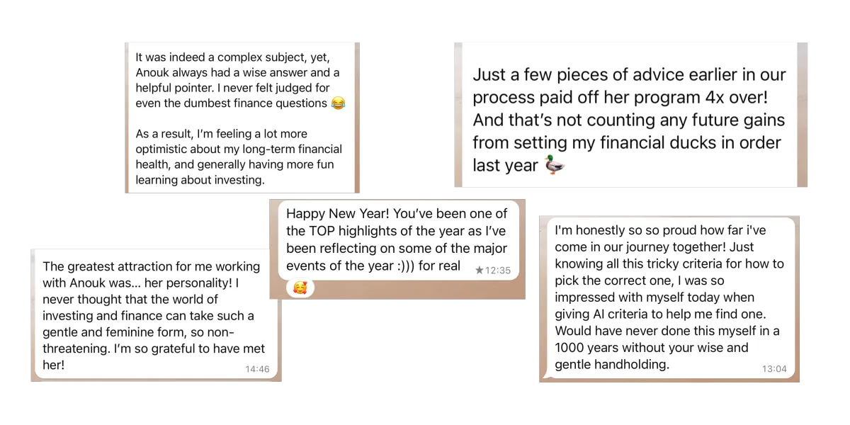 My mission is to empower women like you to take control of their financial future, build wealth, and achieve the freedom they deserve. Book a free discovery call to learn more about my coaching program, or start by exploring my free resources and newsletter.